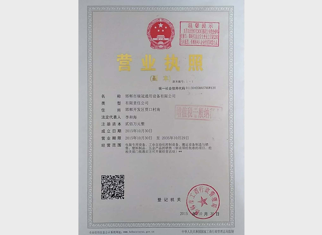 • 邯鄲市瑞冠智能化裝備有限公司